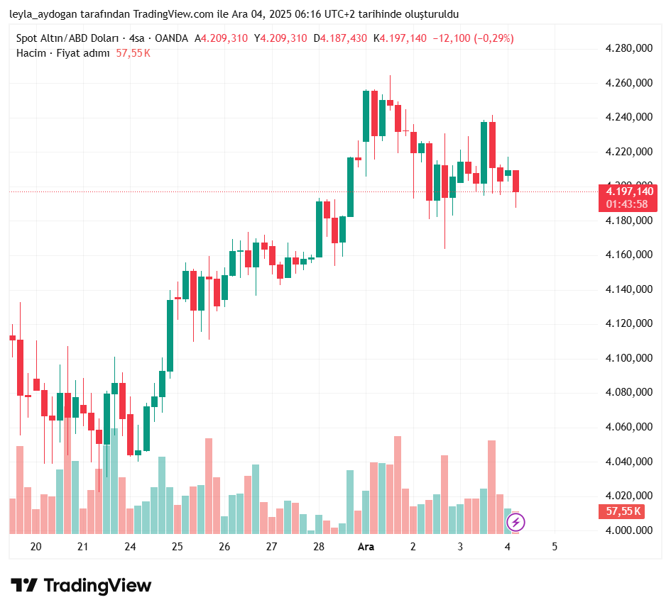 Altının onsu saat 07.15 itibarıyla 4 bin 197 dolardan işlem görüyor.