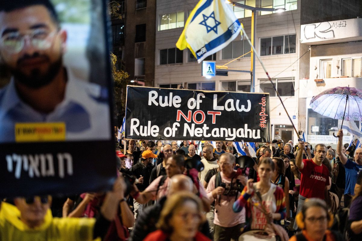 Protestoda, göstericilerin “İsrail, ülkeyi işgal sunağında kurban ediyor” ve “Suçlular hapiste olmalı hükümette değil” yazılı pankart ve dövizler taşıması dikkati çekti.