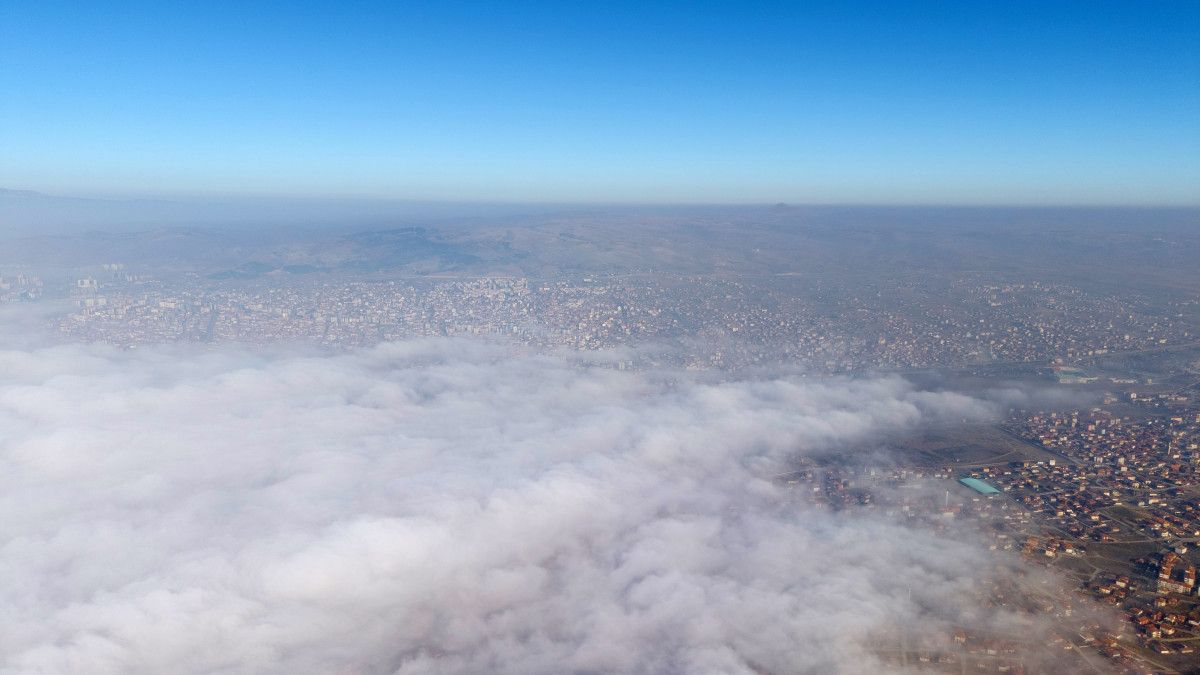 Oluşan manzara, dron ile görüntülenerek sisin kent genelindeki etkisi gözler önüne serildi.