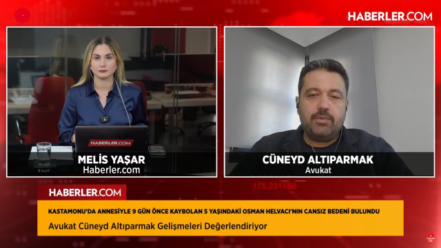 Kastamonu’da annesiyle birlikte 9 gün önce kaybolan 5 yaşındaki Osman Helvacı’nın cansız bedeni bulundu. Avukat Cüneyd Altıparmak, Haberler.com’da sunucu Melis Yaşar’a yaptığı değerlendirmede, olayın seyrinin dikkatle incelendiğini belirtti. Delillerin toplanmasının zaman aldığını söyleyen Altıparmak, anne Huriye Helvacı ile ilgili henüz bir iz bulunamadığını vurguladı. Olayın seyriyle ilgili üç olasılıktan söz eden Altıparmak, “Bu olayın anlık bir öfke sonucu gelişmiş olabileceğini düşünüyorum” ifadelerini kullandı.