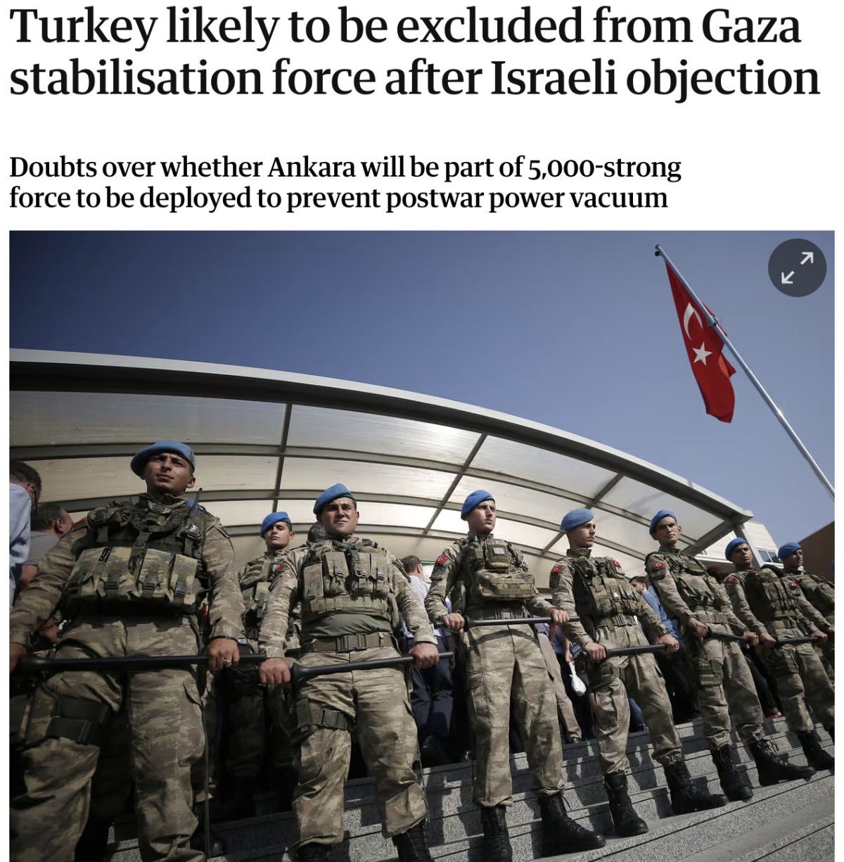 Habere göre Türkiye, asker göndermeye hazır ancak İsrail, Türk askerlerinin bu güce katılmasını onaylamıyor.